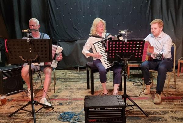 and from what I hear the food was great. In the past we have had the option of bar meals throughout the day, this year, with the new owners only taking over a couple of months ago, this was not an option. Hopefully the bar meals are back on next year. The park is a great place to potter around, walking down to the beach, meeting folk who are sat chatting in various groups, or just enjoying the fresh air and walks. On the final evening we had a concert which featured all the orchestras playing the pieces they had been practicing all week, we also had a spot from the Teaching Team playing a Michael Jackson medley (arranged by Lisa). During the week we were able to drop in to the shop run by Lisa, this had a wide range of accordions, sheet music and associated musical items. This was also a good place to find Harry Hussey playing an accordion, it was a treat to sit there and listen to him playing and giving us tips and advice. It was possible to book one to one sessions with members of the teaching team if you wanted, you just approached the team member and asked if they had a suitable time where you could meet them somewhere on the camp. After the festival we saw a lot of people who had been following the festival on the Facebook festival page, asking to be added to the mailing list for next year, so get your request in early. I can thoroughly recommend attending St. Audries Bay Accordion Festival if you want a good relaxing accordion break at a reasonable price. We went down in a campervan (which cost us around £140 for the week for a pitch with electricity) plus 2 * £100 for the festival itself. Other people stayed in mobile homes on the site, next year they should have a range of Chalets to choose from. On the final day many of us had already reserved our place at next years festival which will be held a week earlier next year to avoid it clashing with the start of school holidays. The 2024 festival will be held on the 5th to the 12th of July 2024 if you want to put your name down on the list. In the past we have had 10 or 12 people from
