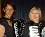 by Cuckoo Waltz. Julie and Jean were then joined on stage by Helen Rich on Fiddle. The trio played Craica Clashmore Orange & Blue and The boys Of Blue Hill. Julie and Jean then continued with a medley of Frances MCD, Boys of the Mhairil and several other tunes. After the medley we continued with The Accordionist, I know Him So Well, Sway, Piccolo Camino and Balade Matinale. It was now time for our break, where we had some cakes kindly made for us by Gladys Rigby. After the break we